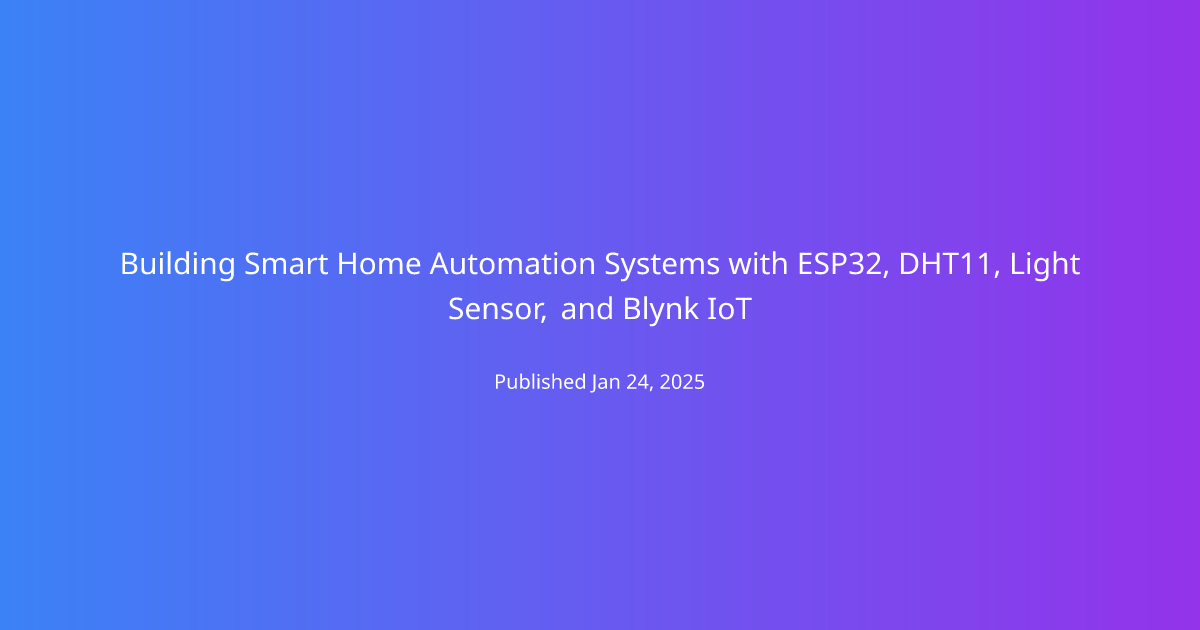 Jan 24, 2025Build a smart home automation system using ESP32, DHT11, light sensor, and Blynk IoT. Monitor temperature, humidity, light, and control devices remotely.
