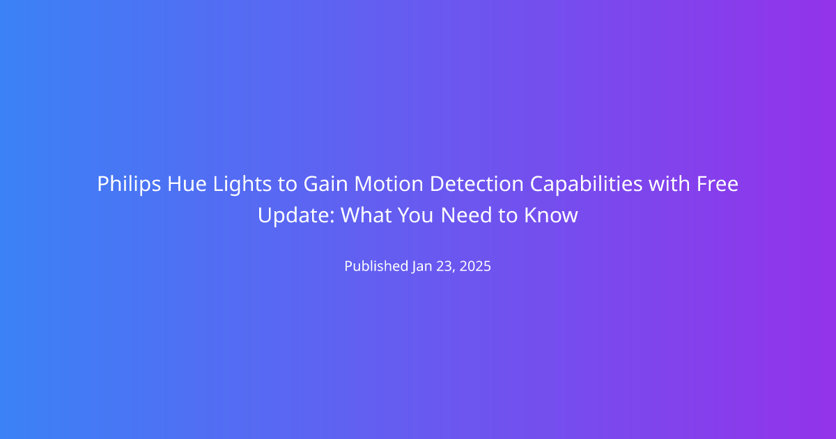 Jan 23, 2025Discover how the upcoming Philips Hue update will transform your existing smart bulbs into motion sensors, enhancing convenience and security without additional hardware.