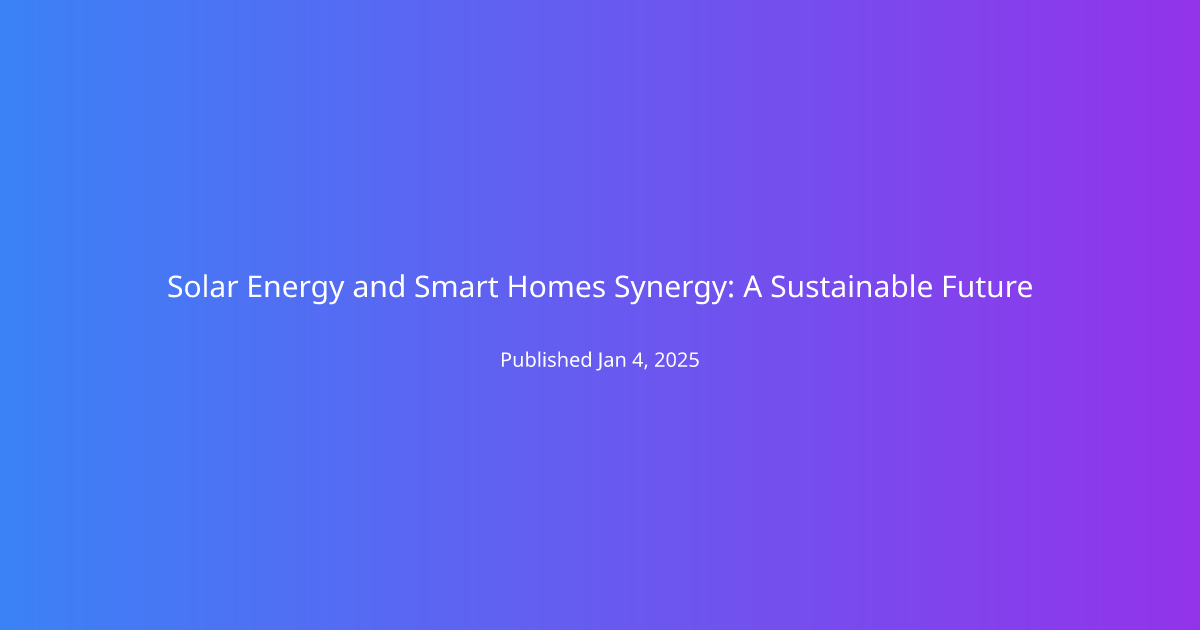 Solar Energy and Smart Homes Synergy: A Sustainable Future