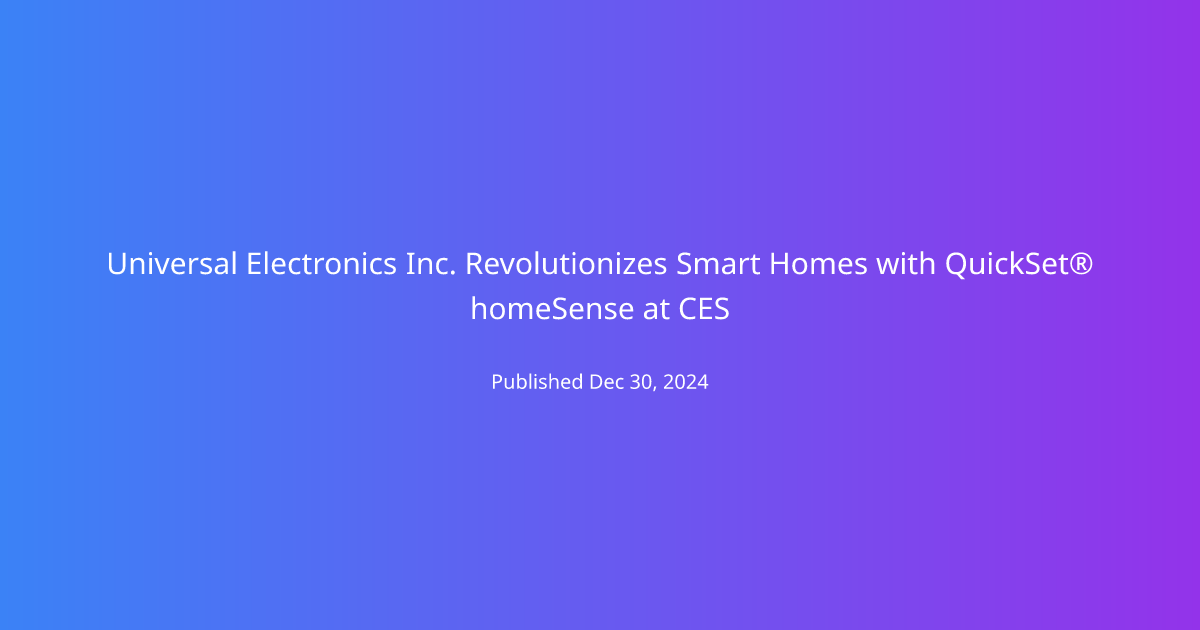 Universal Electronics Inc. (UEI), a leader in smart home technology, is set to unveil its innovative QuickSet homeSense technology at the upcoming Consumer Electronics Show (CES). This technology promises to enhance smart home experiences through on-device intelligence that adapts to user behavior and environmental changes. The system aims to make homes more intuitive, efficient, and personalized, while prioritizing user privacy.